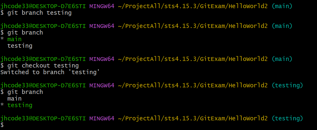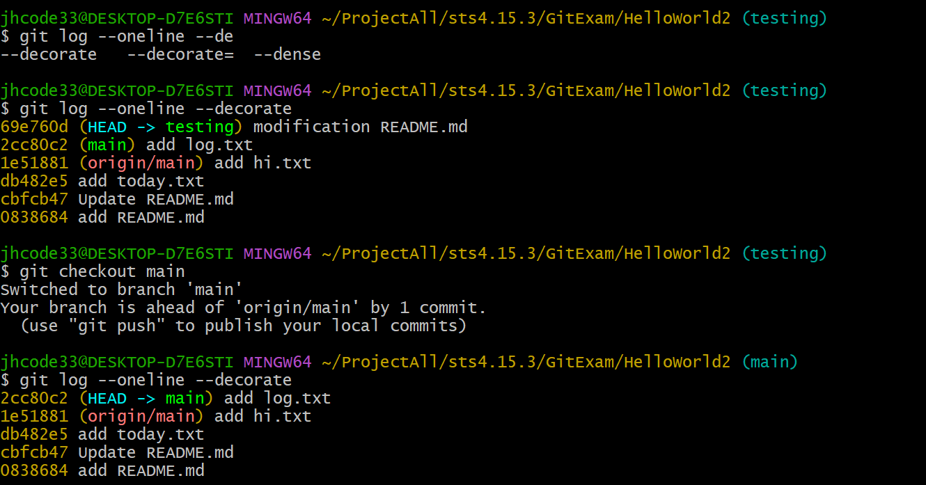 👉 지금까지 브런치 생성과 브런치 변경, HEAD를 통해서 작업하고 있는 브런치를 구별할 수 있다는 것을 확인했습니다.