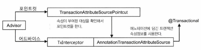 @Transactional이 부여된 모든 오브젝트를 자동으로 타겟으로 인식한다. 이때 사용되는 포인트 컷은 TransactionAttributeSourcePointcut 이다. TransactionInterceptor는 AnnotationTransactionAttributeSource를 활용해서 @Transactional을 포인트컷으로 인식한다.