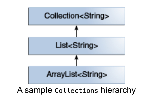 Collections 클래스를 예로 사용하여 ArrayList<E>는 List<E>를 구현하고 List<E>는 Collection<E>를 확장합니다. 따라서 ArrayList<String>은 상위 타입인 List<String>의 하위 타입이고, 또한 List<String>의 상위 타입인 Collection<String>의 하위 타입이기도 합니다. 타입 파라미터를 변경하지 않는 한 하위 타입 지정 관계는 타입 간에 유지됩니다.